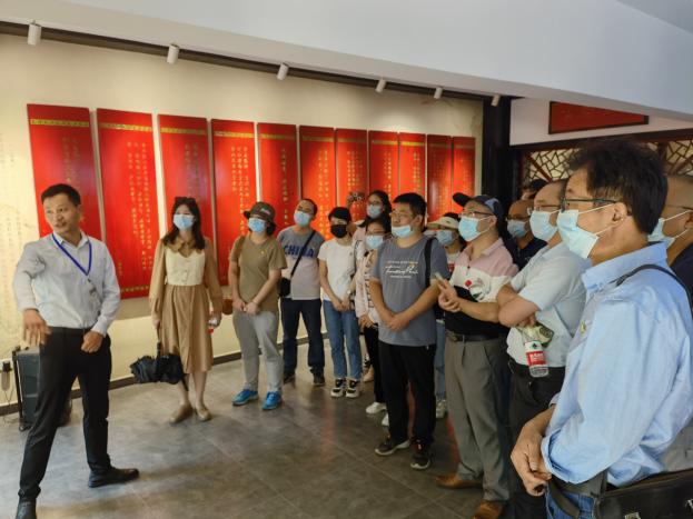 活动的第一站,全体党员参观了三袁家风家规展示馆。这是全国首座以家规家训命名的廉政文化教育基地。在现场,全体党员在讲解员的带领下参观了《袁氏家教十则》《袁氏家戒十条》、“三袁文学艺术思想主要成就”、“廉政文化诗词书画作品”等8个展示版块,集中收看了中纪委推介的《敦厚家风哺育文学三子星座》纪录片。一条条家规家训、一个个家风故事跃然于眼前,全体党员在这场“沉浸式”现场教学中深刻感受到了袁家三郎正直向善、清正廉洁,感受到了袁氏家族“严明敦厚”“立德做人”的良好家风,也正如展示馆前的对联所述“立德做人遵祖训,富民兴国重家风”,发人深省引人共鸣。