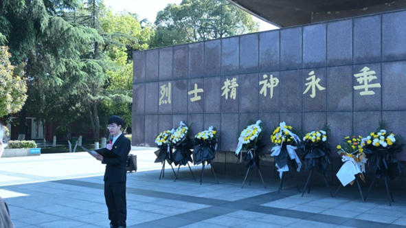 本科生党员代表余海涛同志在纪念碑前作了主题为“传承红色基因,续写先烈荣光”的发言。他表示,缅怀为铭记,更为传承。红色征程,波澜壮阔;红色史诗,感天动地;红色精神,光照未来!研究生党员代表梁佳雨同志也作了发言,她呼吁大家追寻革命先烈的铿锵足迹,共同书写无愧于时代的壮丽篇章。