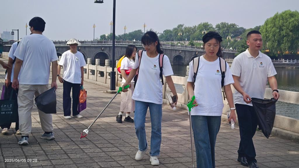 随后,党员们来到护城河畔,开展了捡垃圾和检测护城河水质的实践活动。大家分成若干小组,沿着护城河岸仔细清理垃圾,不放过任何一个角落。同时,在魏平方老师的专业指导下,党员们对护城河水质进行了检测,了解水质状况,并为后续的水质治理提升提供数据支持。