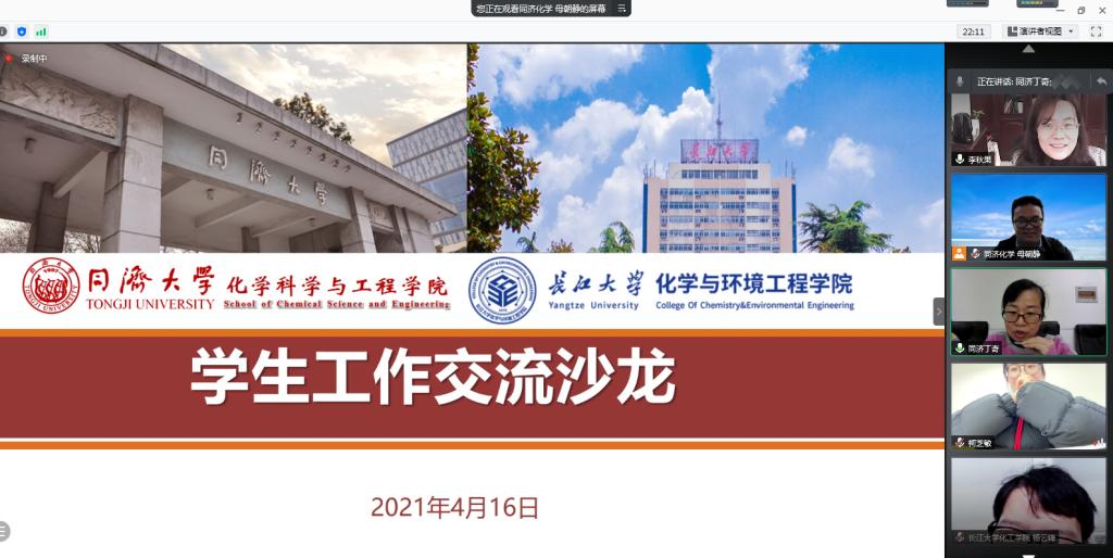 (通讯员 王娜)4月16日13:00,bevictor伟德体育与同济大学化学科学与工程公司以视频方式开展员工工作交流沙龙,两院分管学工的党委副书记、全体辅导员参加会议,本次交流活动由同济大学化学科学与工程公司母朝静书记主持。