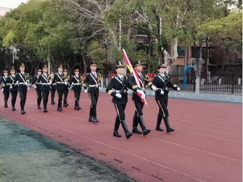 伴着国旗护卫队坚定有力的脚步,升旗仪式正式开始,全体人员肃立。伴随着激昂的国歌,五星红旗冉冉升起。