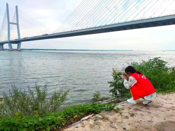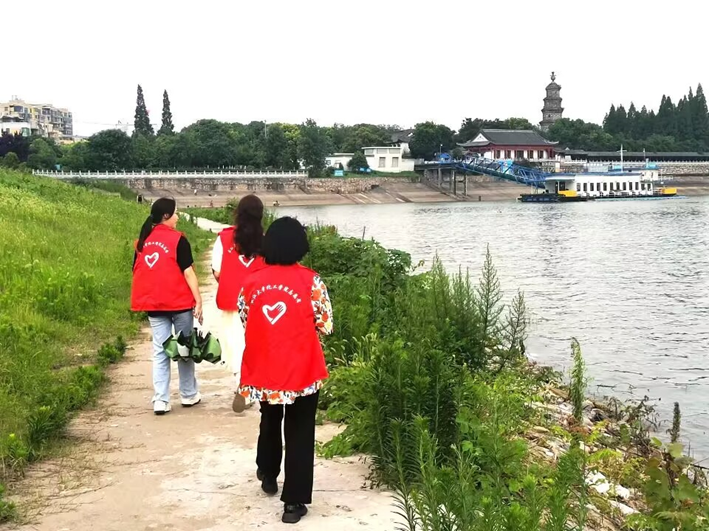 在实地考察中,团队成员们不畏酷暑,深入一线,对水质进行了取样分析,详细记录了生态系统保护与修复的情况,并对河岸堤防的安全与防洪措施进行了细致观察。同时,他们还积极面向新风社区、九曲桥社区等社区开展长江保护宣传活动,通过调查问卷和互动问答等形式,普及环保知识,提升公众的环保意识。