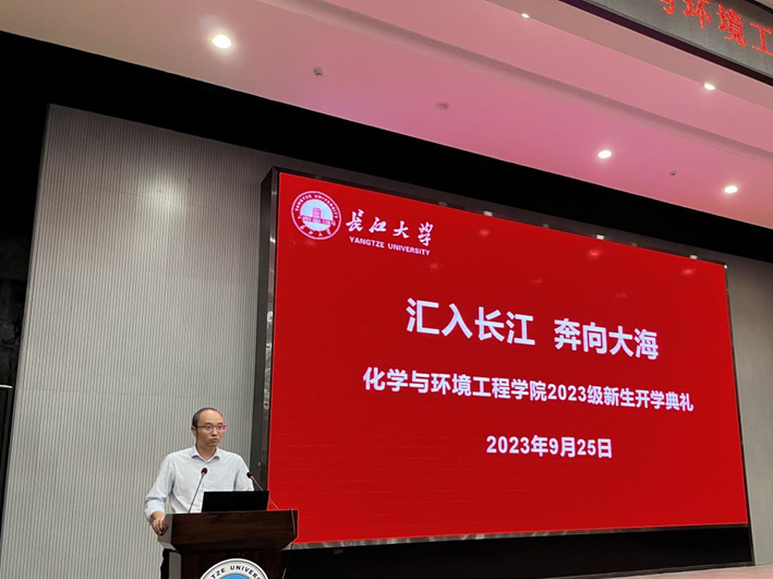 2023级研究生代表张政上台发言,他呼吁研究生新生们要继续保持良好的学习习惯,把握当下,永怀赤子之心,积极进取,为实现中华民族伟大复兴贡献青春力量。