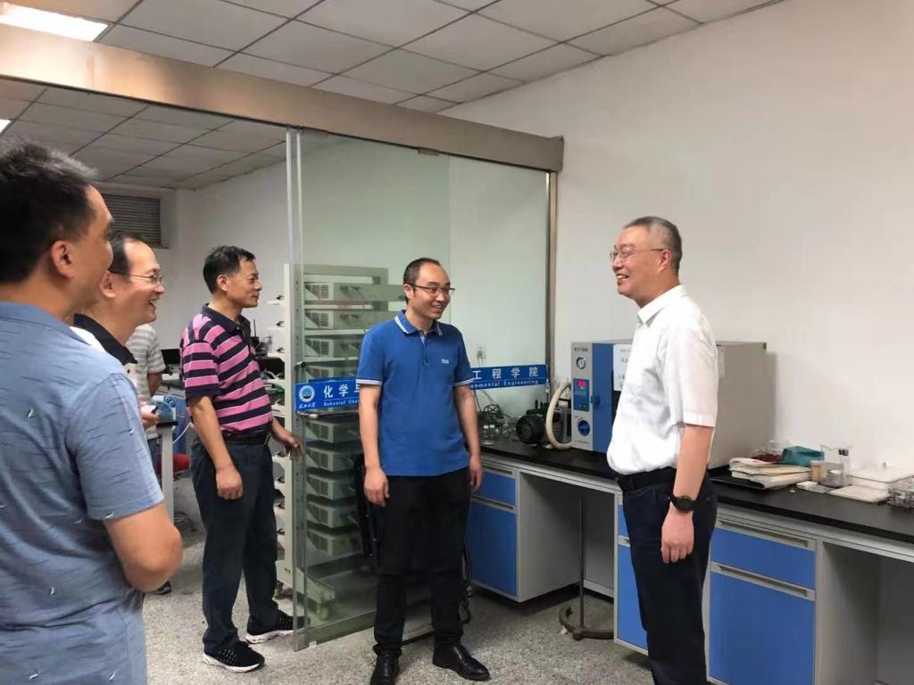 检查过程中,冯征听取了公司经理颜学敏关于实验室建设情况的汇报,并查看了公司大型仪器实验室、基础化学实验室、公司科研实验室,全面了解实验室废弃物存放处理、通风设施、值班安排、日常消杀制度等,仔细询问了员工实验室安全教育培训情况,并提出了具体要求。