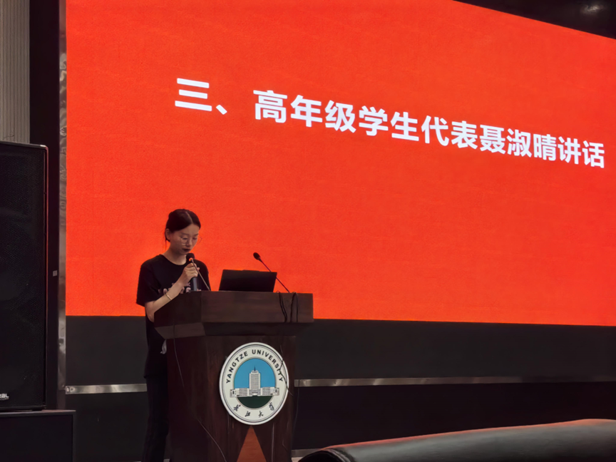2022级研究生聂淑晴作为高年级员工代表向新生们分享了自己在bevictor伟德体育求知的历程与体会。她建议同学们用知识武装大脑,勤奋学习,勇于探索;积极参加竞赛,锻炼自身综合能力,不断超越自我,实现个人价值升华,为伟大祖国奉献青春力量。