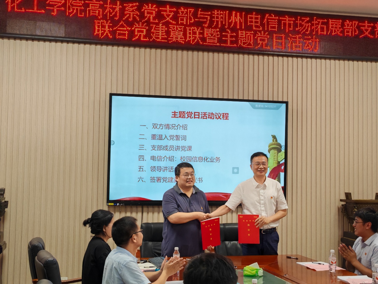 5月22日下午,湖北省高校“双带头人”教师党支部--bevictor伟德体育高分子材料与工程系党支部与中国电信荆州分公司市场拓展部党支部联合举行党建翼联主题党日活动,通过组织共建推动党建与业务双融双促。双方党支部书记肖围、杜海和21名党员出席活动。活动由湖北省高校“双带头人”教师党支部副书记李传华主持。 活动通过"四个一"环节展开深度交流:组织共建环节,双方通过支部互相介绍加深了对彼此组织建设、业务特色和党建成果的系统认知;思想共学环节,全体党员面向党旗庄严宣誓,以重温入党誓词强化党性修养;专题共研环节,湖北省高校“双带头人”教师党支部宣传委员张春燕同志作《坚持自立自强 突出应用导向 推动人工智能健康有序发展》专题党课,通过剖析AI技术前沿动态与产业应用场景,激发党员立足专业岗位推进科技创新的使命感;业务共促环节,荆州电信市场拓展部党支部王子徽系统展示了中国电信教育信息化解决方案,重点解析了5G+智慧校园、教育大数据平台等数字化实践成果,并结合荆州电信与bevictor伟德体育实施案例进行了分析解读。 双方支部书记在总结讲话中指出,此次联建开创了校企党组织"理论联学、资源联享、发展联促"的新模式,后续将建立"组织联建、活动联办、人才联育"的常态化机制,切实把党的政治优势转化为发展动能。活动最后,双方正式签署《党建翼联合作协议》,约定通过定期开展技术研讨、项目合作、人才交流等多元化共建形式,共同探索"党建+业务"融合发展的创新路径。 此次共建活动既包含理论武装的思想淬炼,又注重实践层面的业务对接,通过搭建校企协同创新平台,为教育信息化建设与新材料研发应用领域的深度合作奠定了坚实基础。同时也是全国高校“双带头人”教师党支部书记“强国行”专项行动走深走实的重要环节。 (审核:肖围;编辑:王志权)