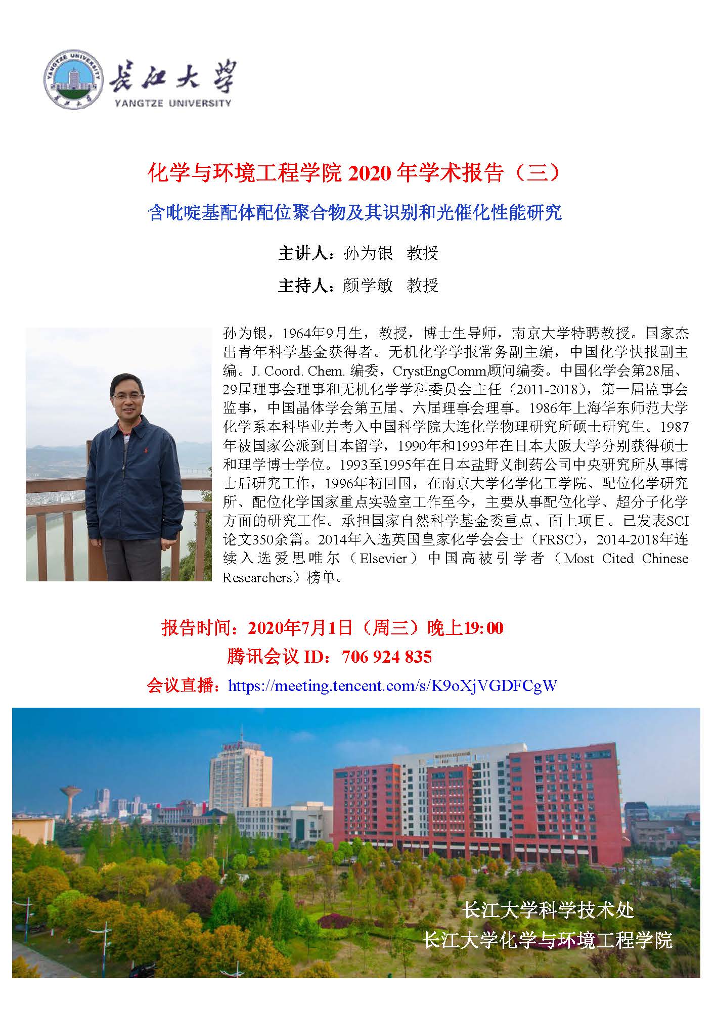 报告题目:含吡啶基配体配位聚合物及其识别和光催化性能研究