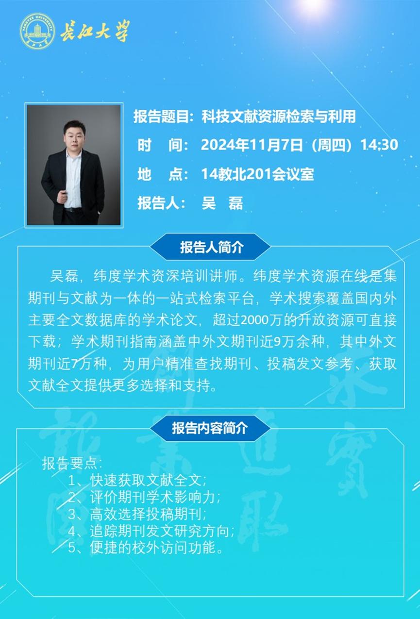 长江化工讲坛: 科技文献资源检索与利用